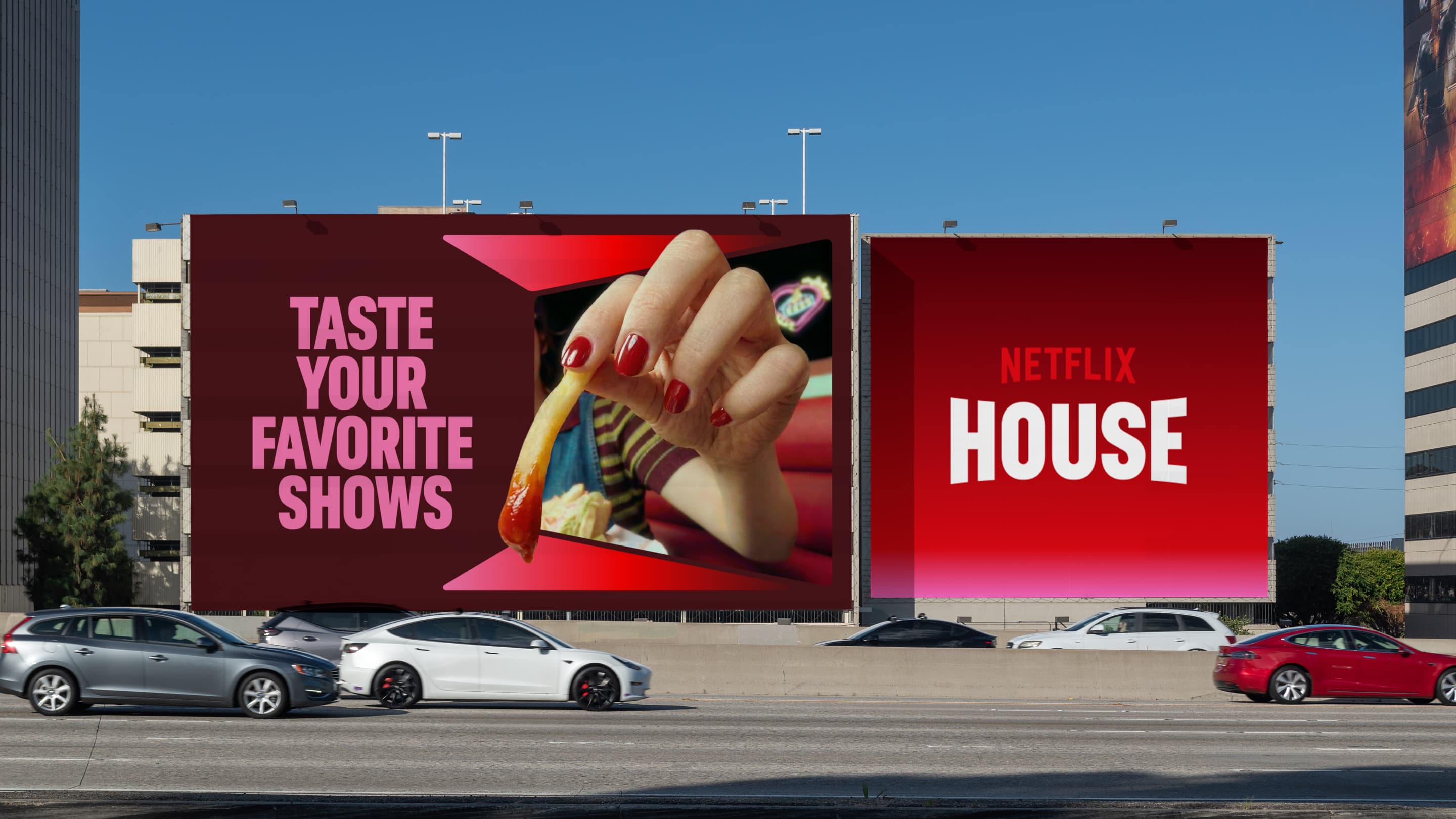 The system behaves like infrastructure rather than campaign design. Masterbrand elements such as typography, motion and frame logic remain fixed across locations while the IP layer flexes around attractions, programming and local moments. Environmental graphics, wayfinding and digital surfaces guide visitors through different narrative zones while retail and food extend stories into culture and commerce. The model supports new shows, seasonal programming and regional expansion without losing clarity. Netflix House becomes a platform for physical storytelling rather than a single attraction.